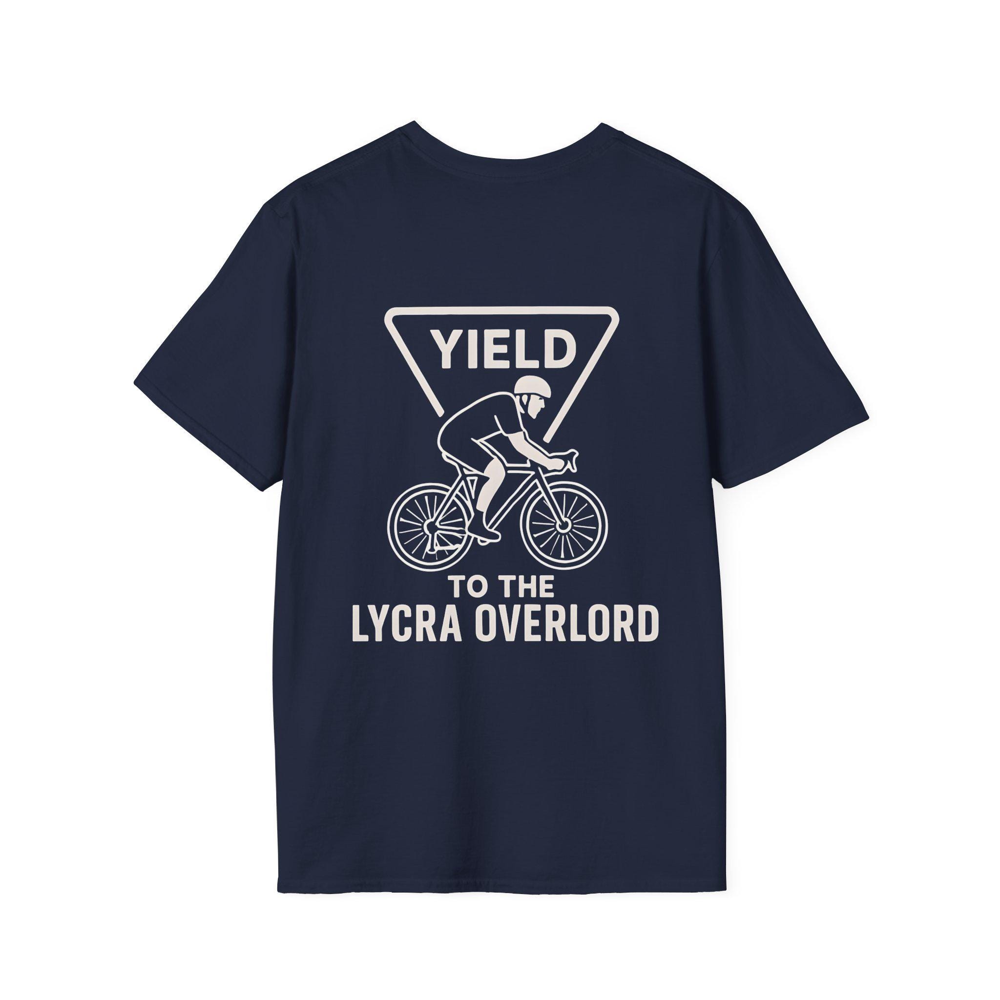 Funny Cycling Gift T-Shirt | Yield to the Lycra Overlord | Humorous Bike Rider Tee