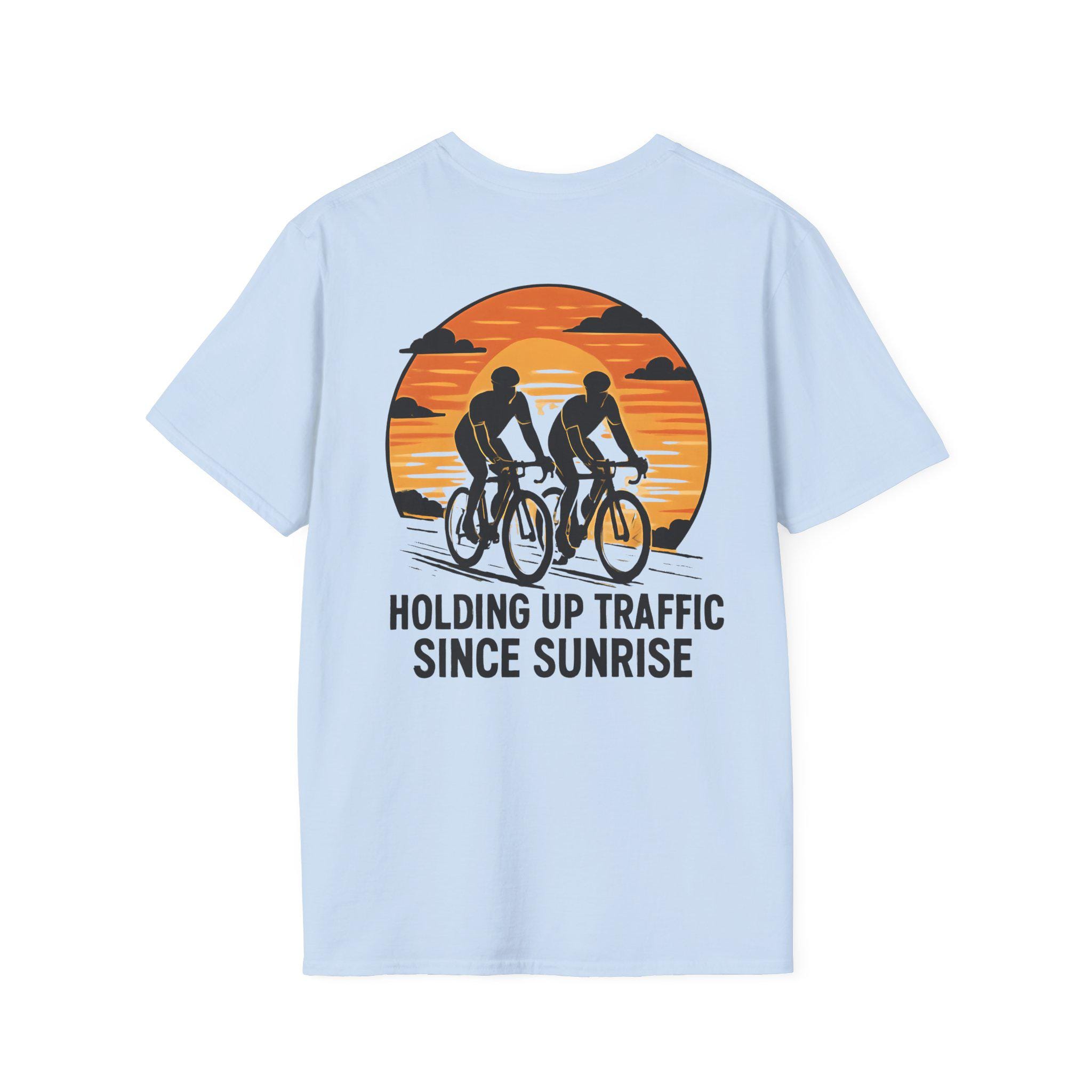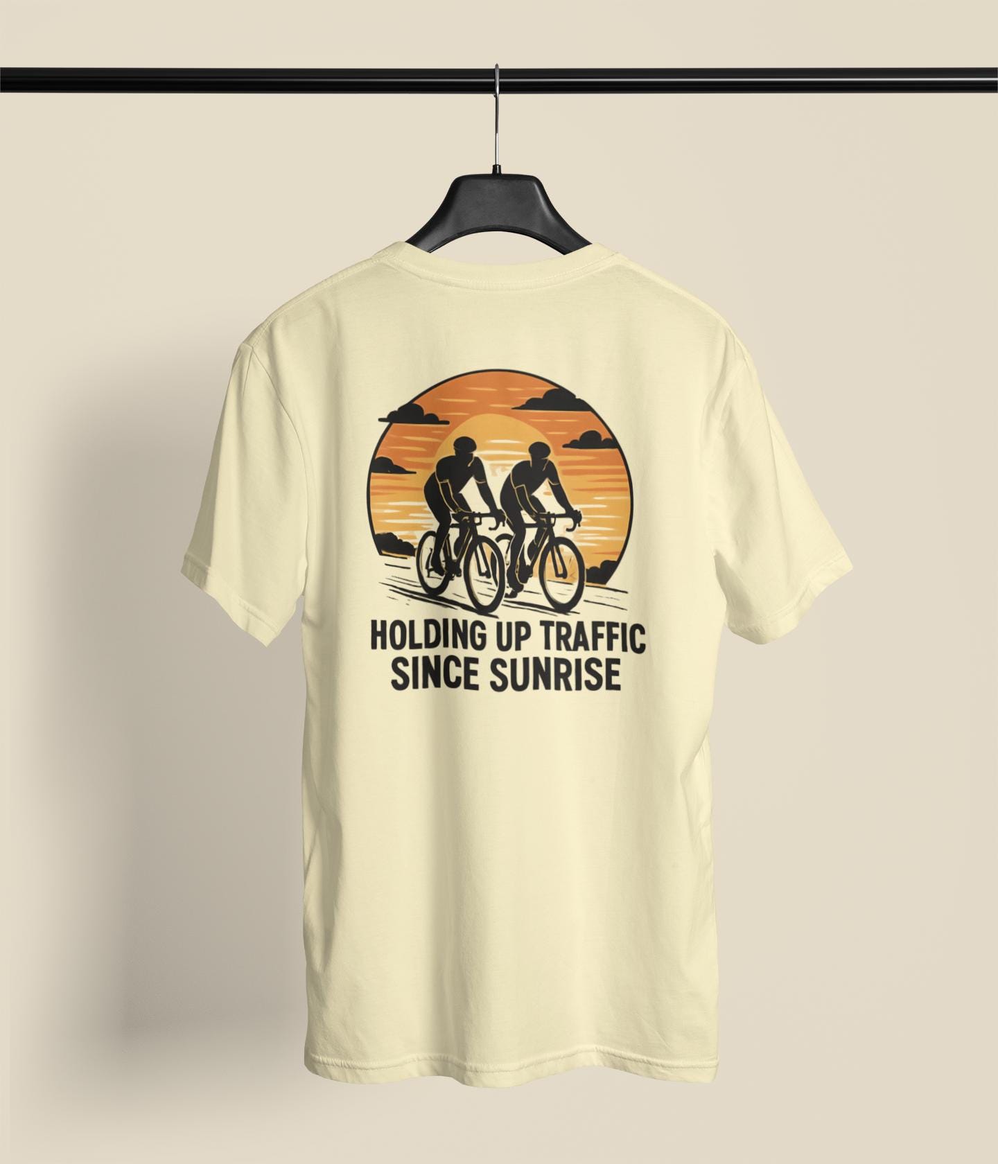 "Holding Up Traffic Since Sunrise" – because rules are suggestions and the road belongs to Lycra.