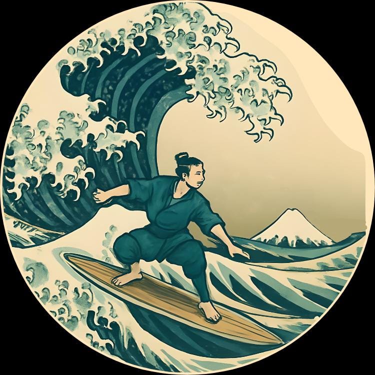 Ride the calm with our Wave Whisperer T-shirt, featuring a minimalist ukiyo-e inspired wave graphic. This back-printed design channels the serenity and power of the ocean in classic Japanese woodblock style. Ideal for surfers, coastal dreamers, and vintage art lovers alike.