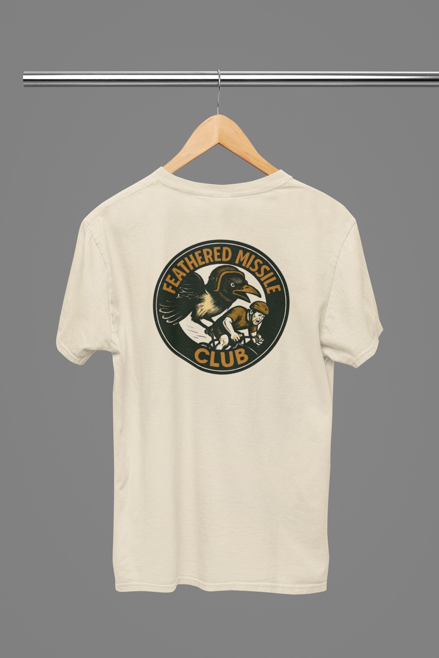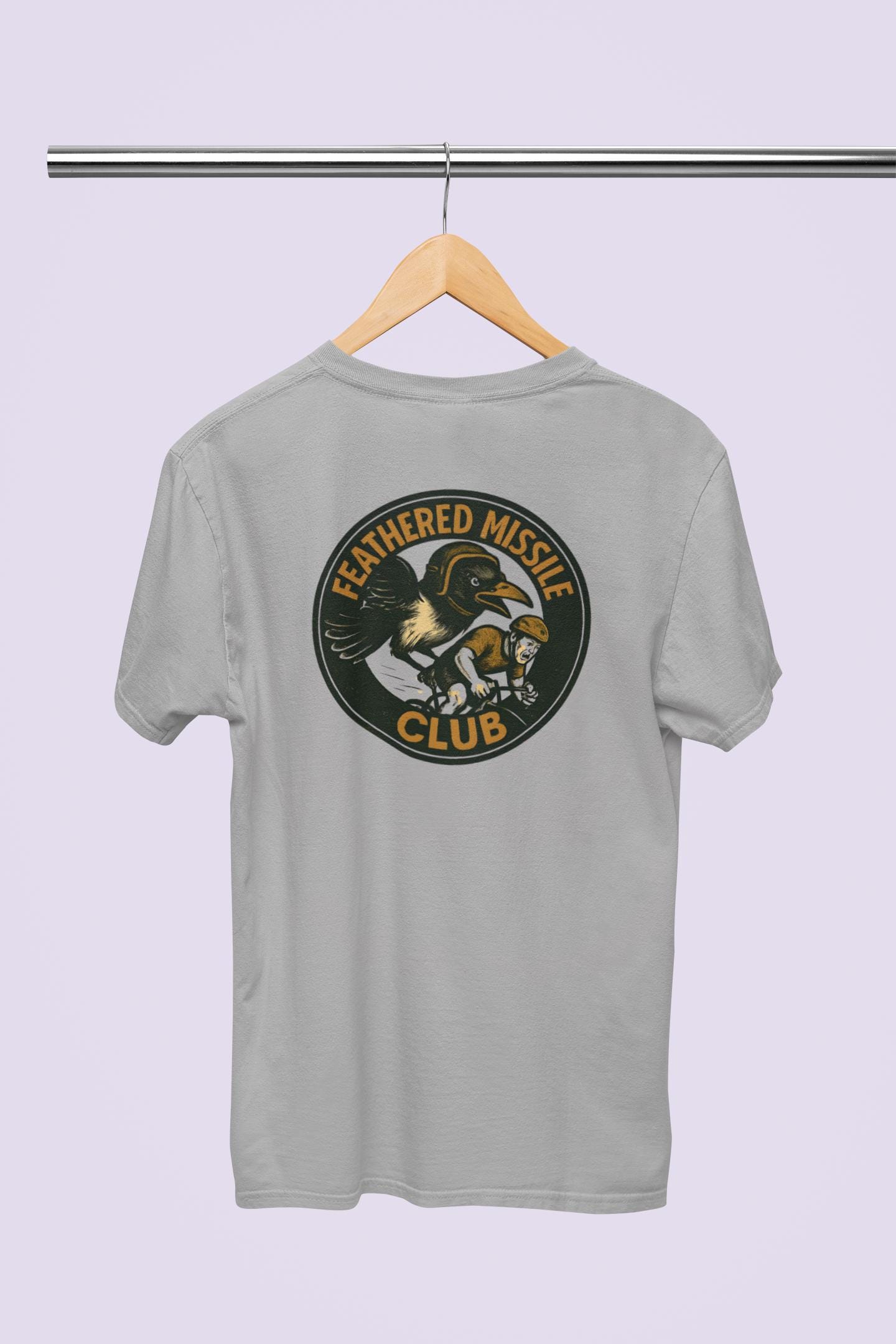 Get ready for peak Aussie cycling sarcasm! Our 'Feathered Missile Club' Vintage Cycling T-Shirt blends retro style with the all-too-real terror of magpie swooping season.