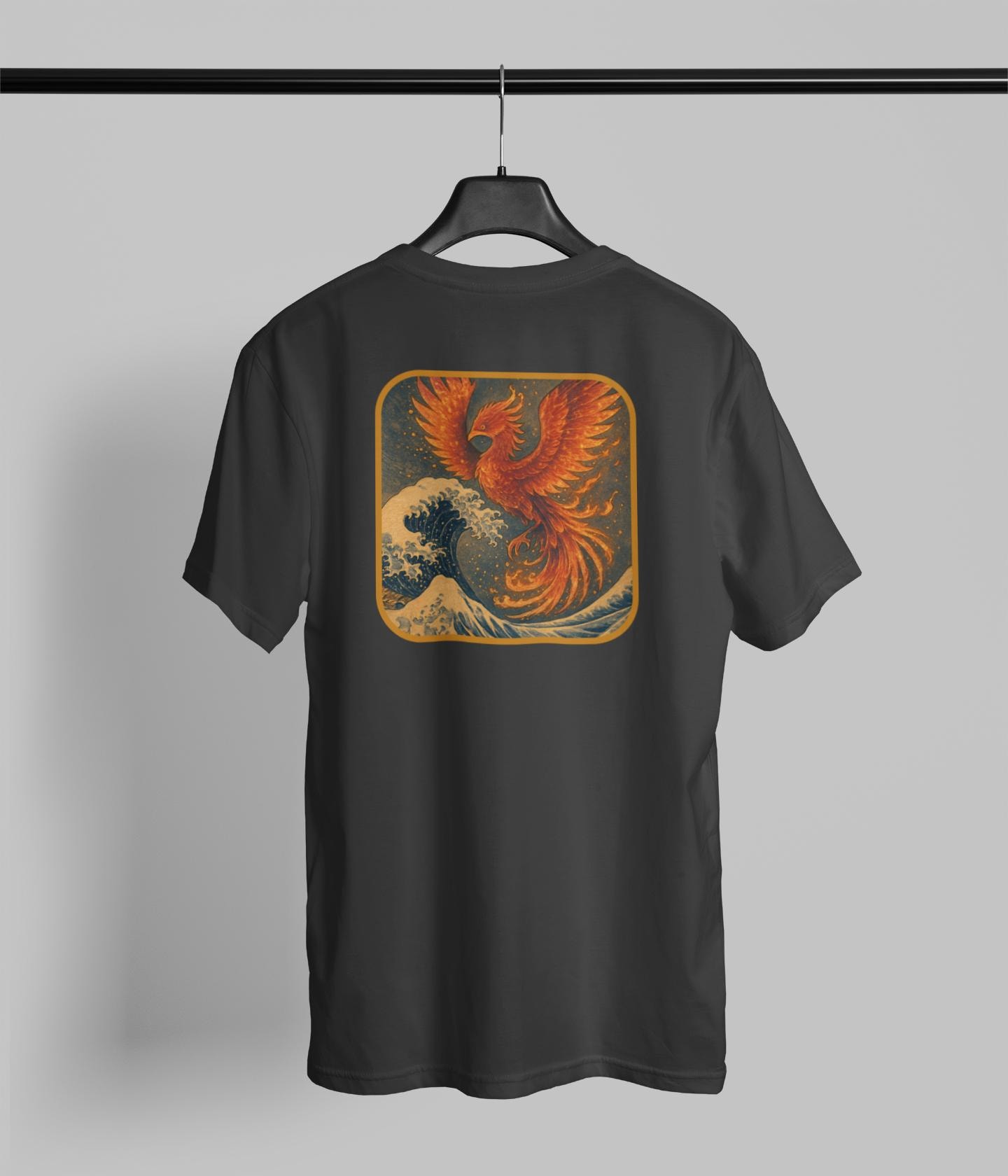 Japanese Phoenix Wave Surf T-Shirt | Boho Beach Graphic Tee | Aesthetic Summer Gift