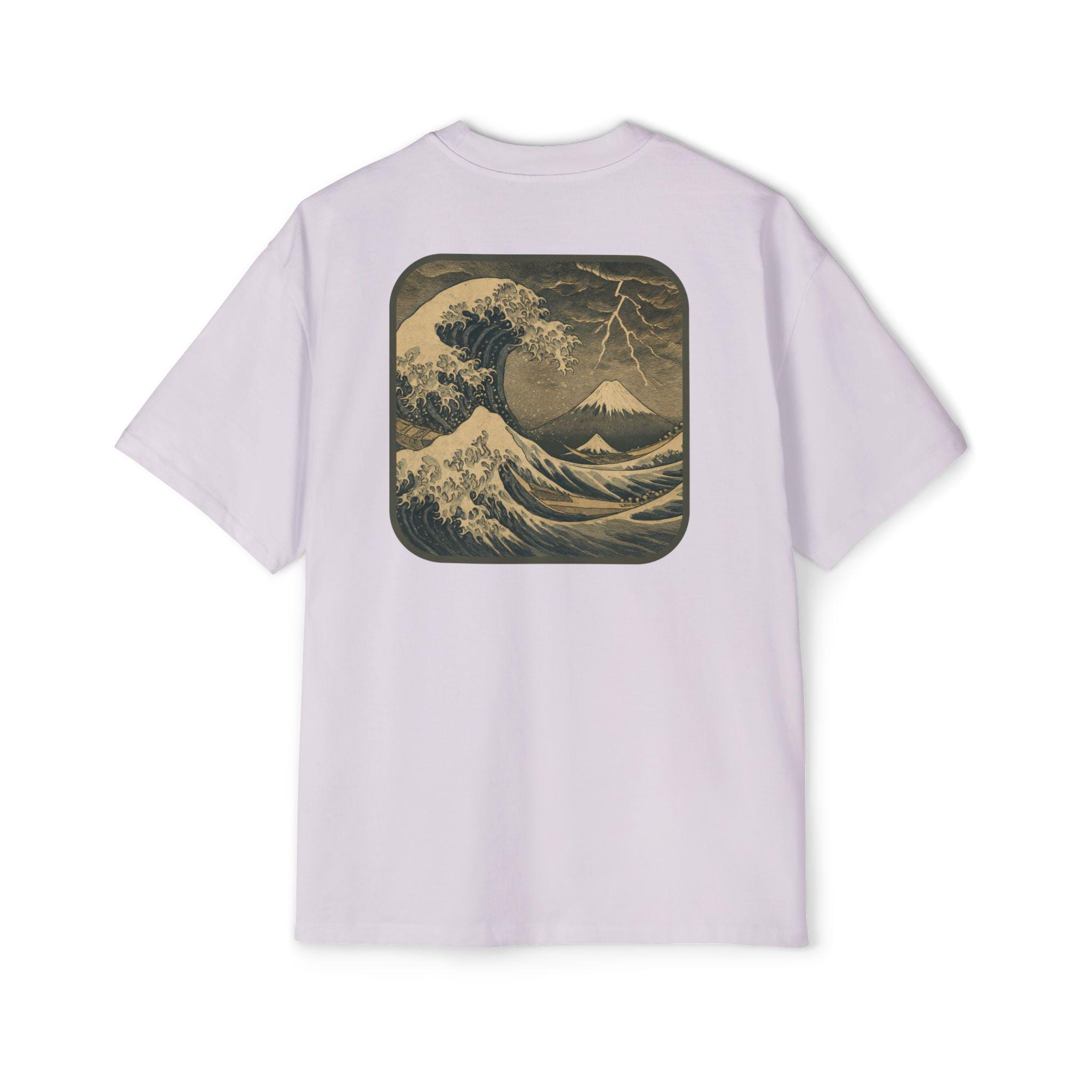 Feel the power of the ocean with our Storm Over Fuji T-Shirt, printed on the classic AS5080 soft cotton oversize tee for comfort and durability. This design features a towering wave crashing in the foreground with fishing boats tossed by the swell, while Mount Fuji rises majestically in the background under a dramatic stormy sky. Inspired by traditional Japanese ukiyo-e surf art, this t-shirt captures the raw beauty and energy of the sea.